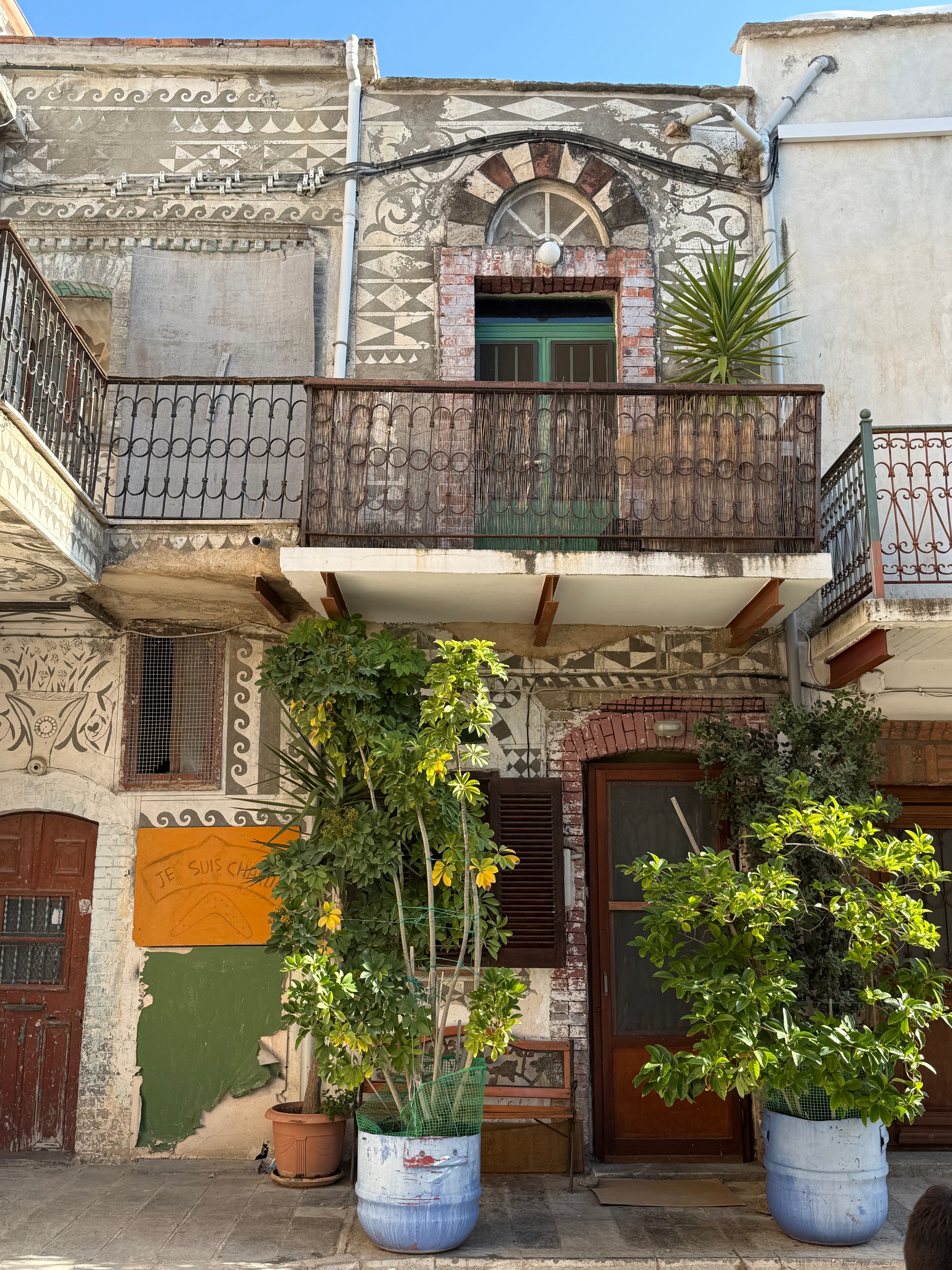 Dating back to the mid 1800s, this distinct style of decoration is called xysta (which roughly translates to “scratched”) and is achieved by using a tool (often a fork!) to scrape away layers of white plaster, exposing a contrasting color beneath. Many of the existing craftsmen who continue to use this technique to repair or create new designs have learned the craft from relatives and won’t accept money as payment.